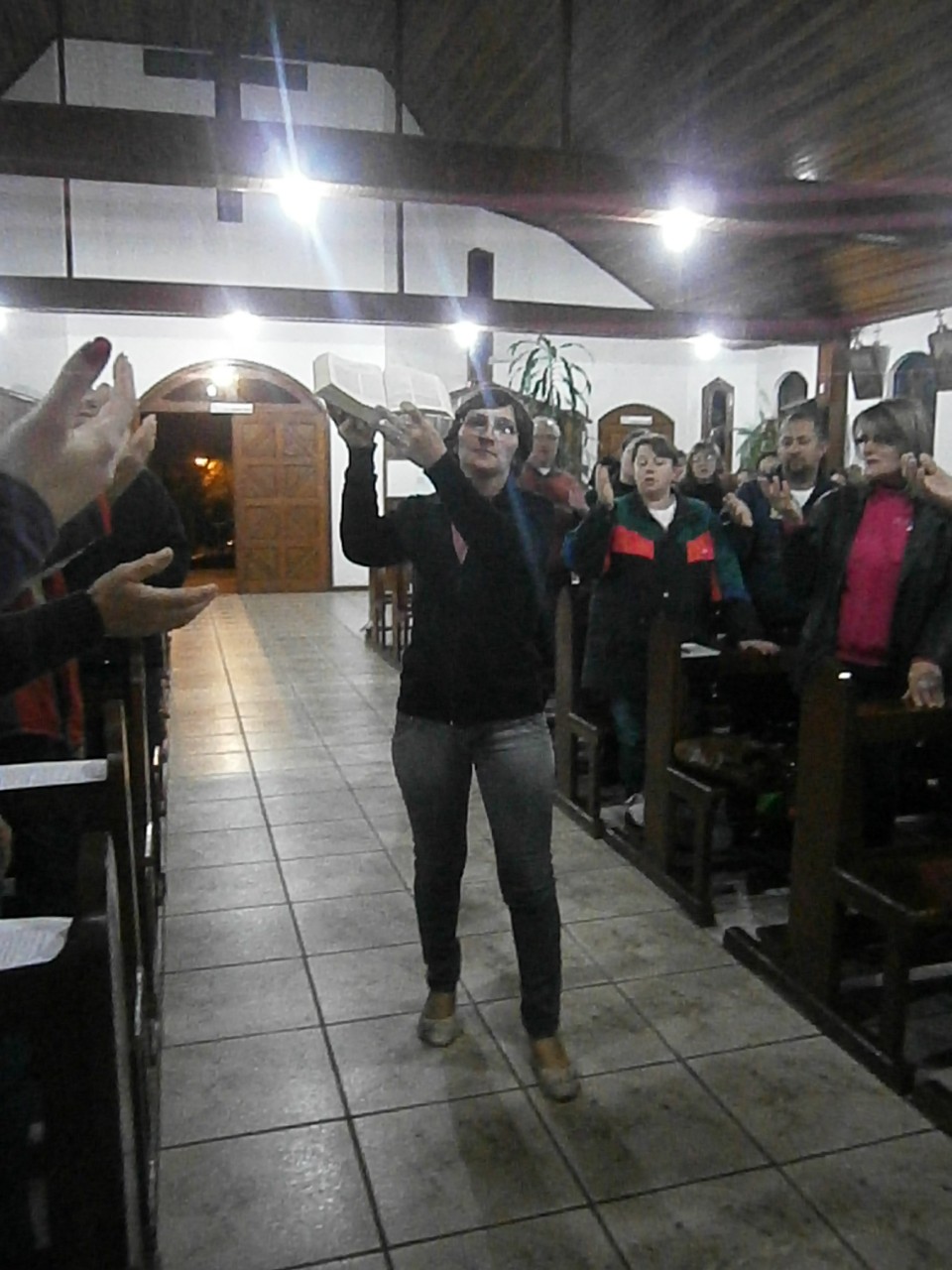 Os missionários foram acolhidos com alguns cantos e logo após houve a oração inicial com a reflexão dos símbolos expostos na frente do altar. Os trabalhos da noite seguiram com a entrada e a proclamação da palavra, que contribuiram com o tema do encontro.